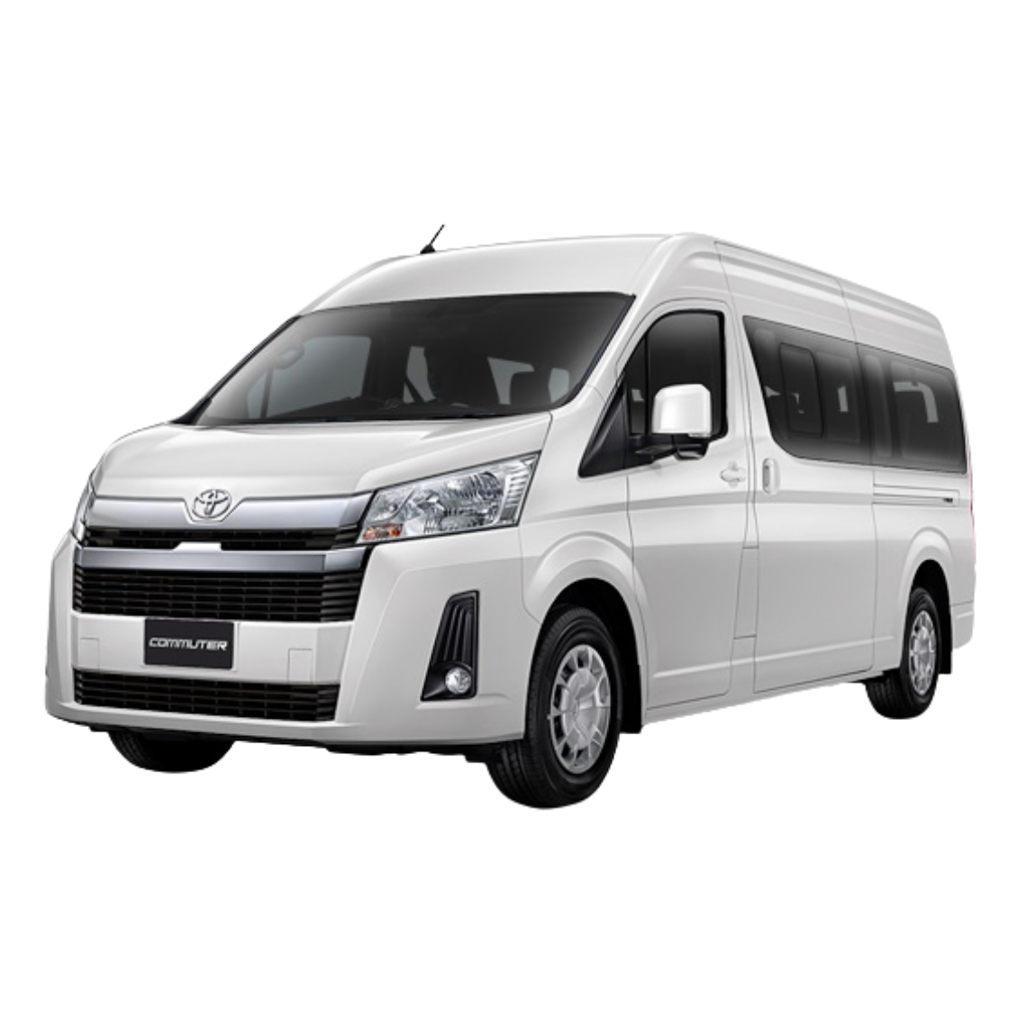 CAR TYPE 4: The VAN Toyota Commuter or similar : Offers space for 5 to 7 persons and luggage ( 4 suitcases and 2 small suitcases ) or 8 to10 persons without suitcases, for sightseeing. Multipurpose vehicles, excellent value for bigger parties. Rates include highwaytoll.